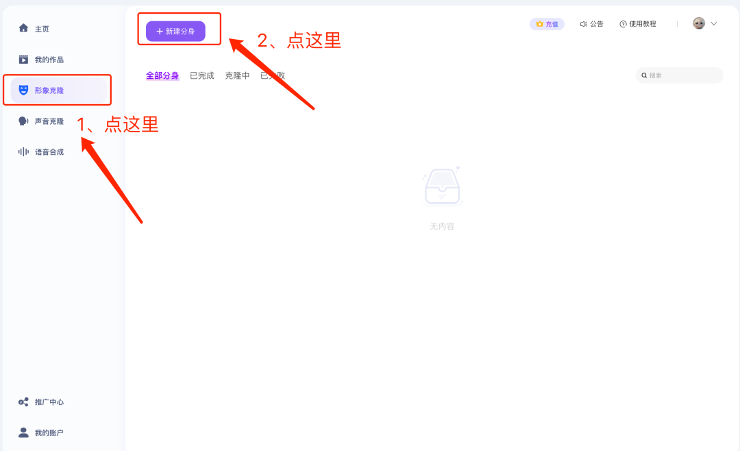 欢迎大家制作自己属于自己的数字人,制作前我们需要手机自己录制一段视频选择自己的形象分身。
